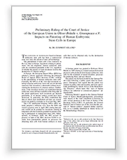 | 자료2 | Preliminary Ruling of the Court of Justice of the European Union in Oliver Brüstle v. Greenpeace e.V: Impacts on Patenting of Human Embryonic Stem Cells in Europe | |
