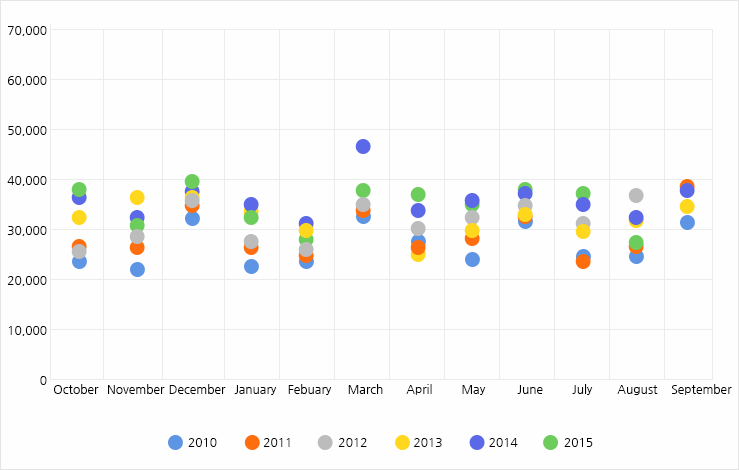 2010년 ~ 2015년 월별 미국 특허출원 동향