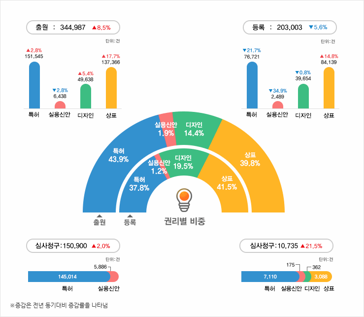 지식재산 출원은 344,987건으로 전년 동기대비 8.5% 증가