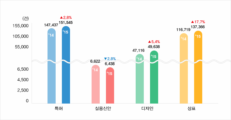 지식재산 등록은 203,003건으로 전년 동기대비 5.6% 감소