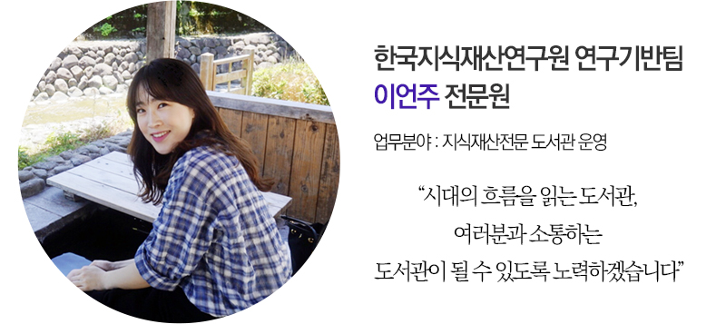 “문헌정보학에서는 도서관을 ‘성장하는 유기체’라고 표현합니다. 지금의 모습에 안주하지 않고 시대가 요구하는 도서관의 개념에 대해 계속 고민하고 변화를 주도하라는 의미를 담고 있죠. 이제 내년이면 지식재산전문도서관도 10주년이 됩니다. 시대의 흐름을 읽는 도서관, 여러분과 소통하는 도서관이 될 수 있도록 노력하겠습니다.”