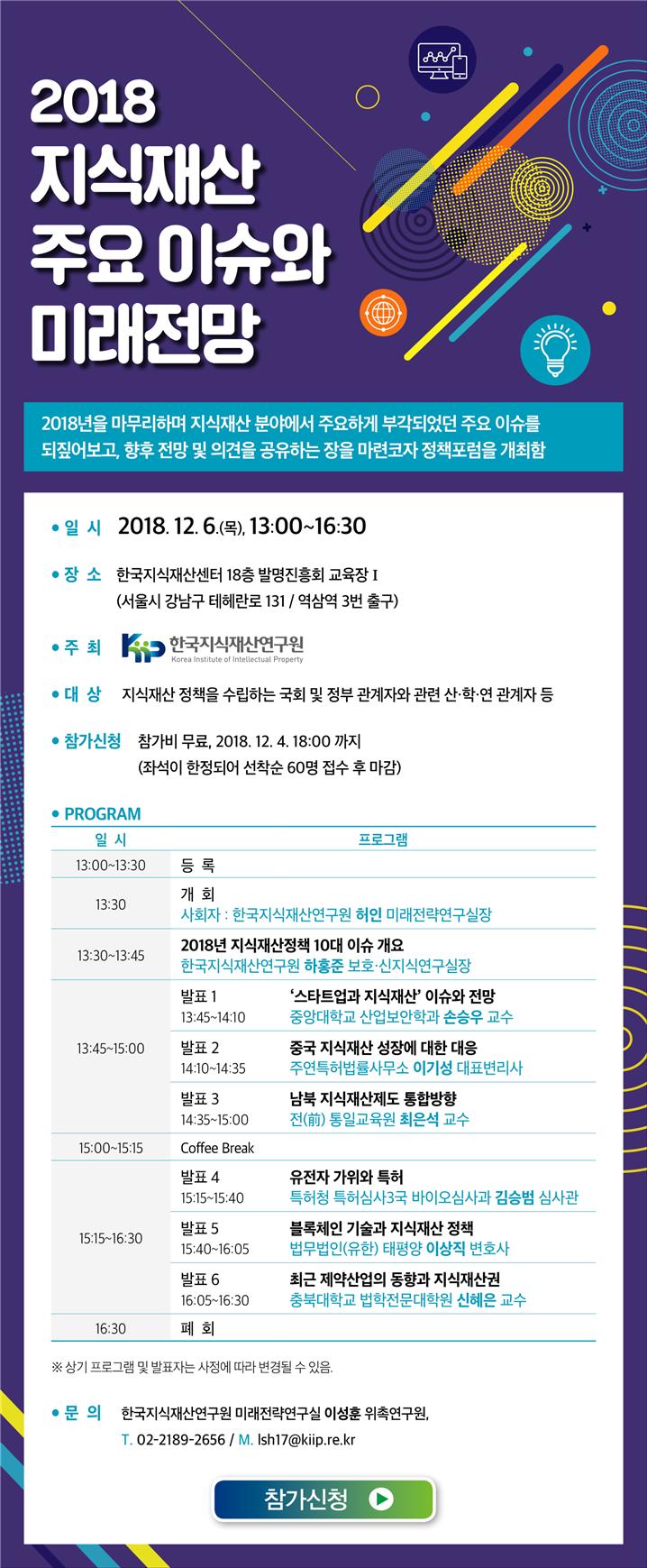 허화 부국장을 비롯한 중국국가지식산권국의 주요 관계자는 양국 지식재산권 보호 정책에 대한 논의를 위해 우리나라 지식재산 분야의 유일한 싱크탱크인 한국지식재산연구원을 직접 방문하였다. 이번 간담회는 양국 간 지식재산 정책에 대한 이해를 증진하고 향후 지식재산 연구 방면의 협력을 위한 목적으로 개최되었다.