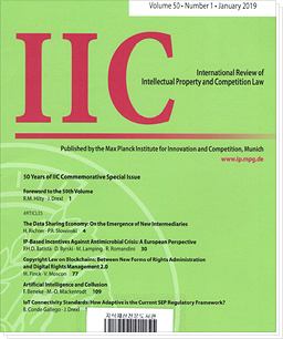 IIC : international review of industrial property and copyright law (Vol.50, No.1 2019)
