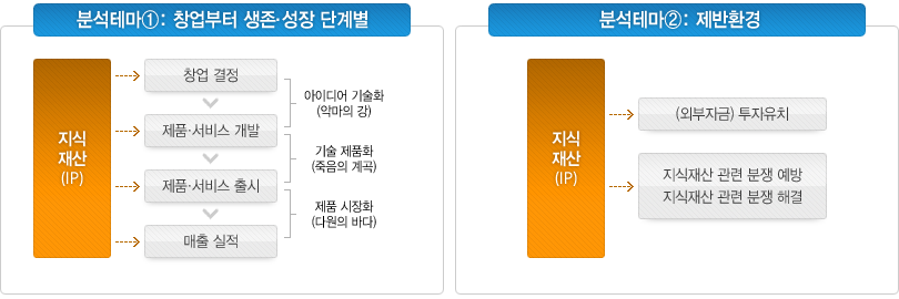 - 또한, 스타트업이 생존하고 성장하기 위해 필요로 하는 투자 유치와 지식재산 관련 분쟁 등의 제반 환경에 미치는 지식재산의 영향을 살펴보고자 함