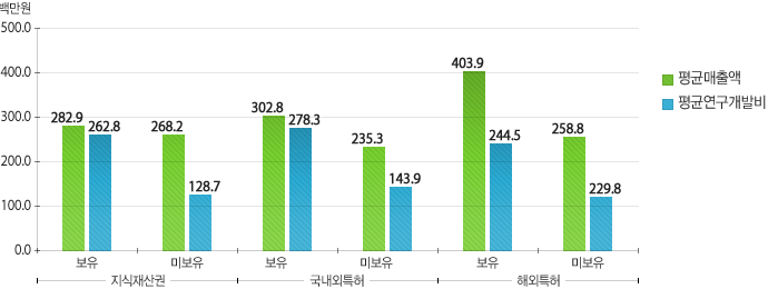 (현상3) 스타트업의 경영에 있어 사업의 성공을 1차적으로 제품 서비스의 판매를 통한 매출 실적이라고 봤을 때, 특허 등 지식재산을 보유하는 것 자체만으로 사업의 성공을 보장하는 것은 아님을 확인할 수 있음- (시사점) 특허 등 지식재산을 보유하고 있다고 해서 그 자체로 사업성이 좋아지는 것이 아님. 그러나 사업성이 있는 아이디어 및 기술력을 특허 등의 지식재산권으로 보호받을 수 있다면, 성공한 사업을 보호하는 수단으로 활용할 수 있으며, 자금투자 유치 등을 통해 기업의 성장가능성을 극대화 할 수 있음. 그러므로 스타트업들은 우수한 지식재산권을 적시에 확보하는데 지속적인 투자를 해야 함