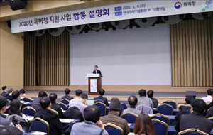 2020년 1월 8일, 특허청(청장 박원주)은 지식재산 창출·보호·활용에 관심이 있는 국내 중소·벤처기업과 대학·공공연구기관을 대상으로 「2020년 특허청 지원사업 합동 설명회」를 서울에서 개최하였다. 이번 설명회는 서울(1.8, 한국과학기술회관)을 시작으로 광주(1.15, 광주이노비즈센터), 부산(1.17, 부산상공회의소) 3개 도시에서 개최되는 전국 규모 설명회의 첫 번째 행사로 관련 기관인 한국특허전략개발원, 한국발명진흥회, 한국지식재산보호원, 기술보증기금이 함께 참여하여 특허청 지원사업의 성공사례, 지원절차 등을 알기 쉽게 설명하고자 하는 취지로 마련되었다.