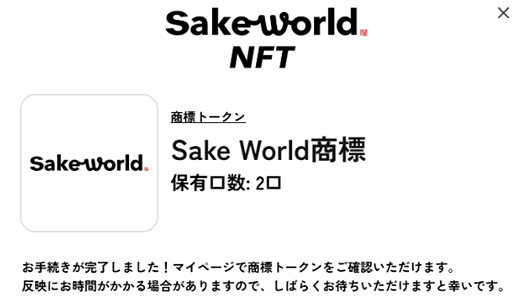 2025년 3월 17일, 일본 술(사케) 관련 사업을 운영하는 일본 리프 퍼블리케이션즈(リーフ·パブリケーションズ)社는 상표권 공유지분 NFT를 구매하여 일본 술(사케) 제조에 대한 투자를 할 수 있는 'Sake World 양조장 투자(Sake World酒蔵投資)' 서비스를 개시하였다고 발표함